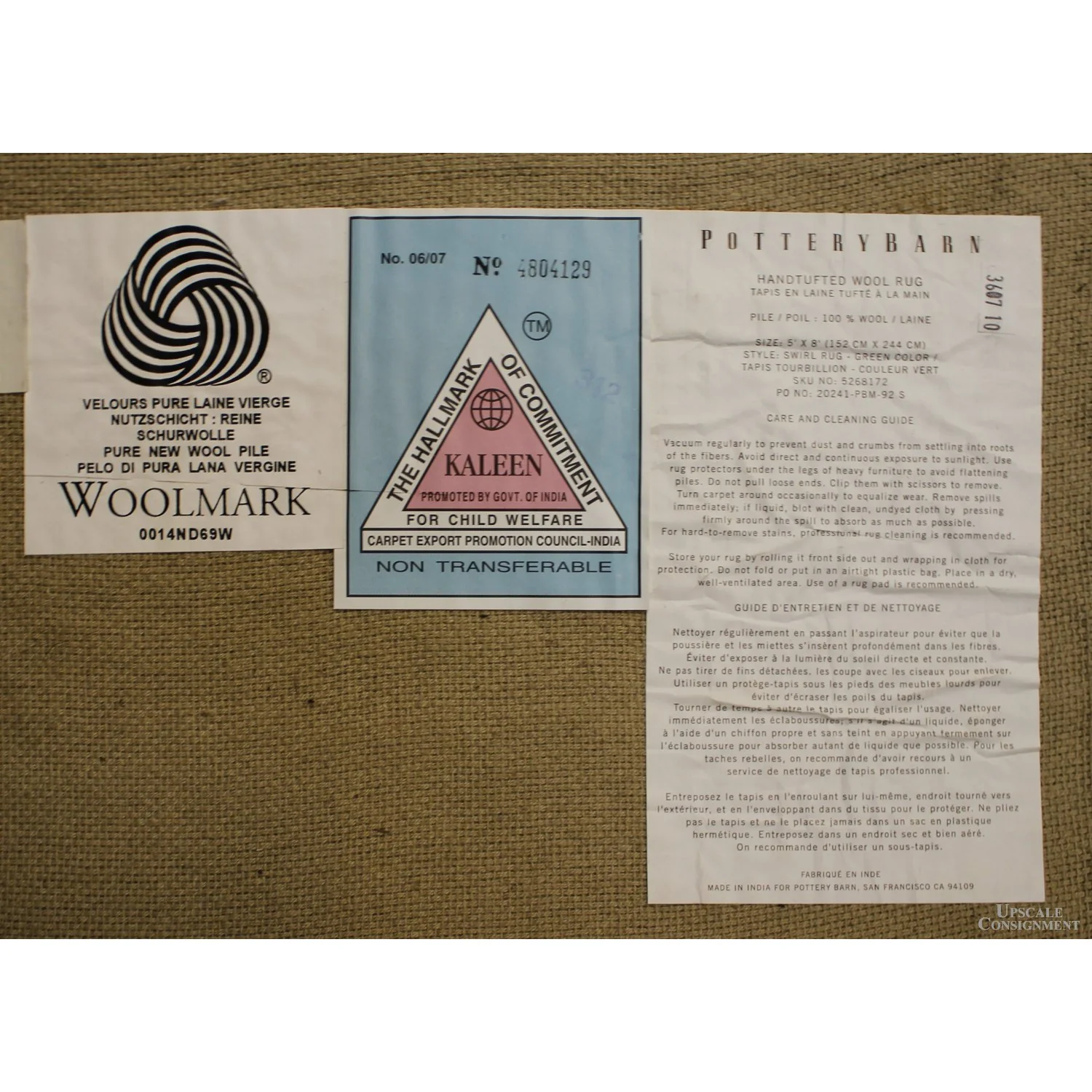 -70%Pottery Barn 5' X 8' Green Swirl Wool Area Rug—